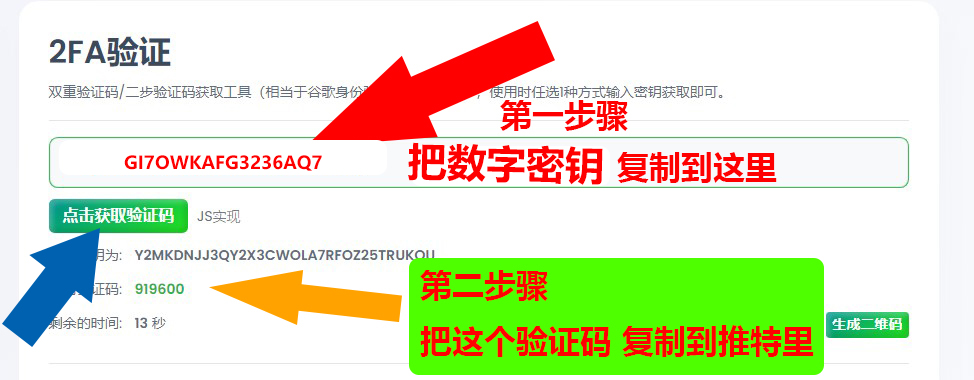 2 通过秘钥获取验证码,如下图,输入密钥–》点击获取验证码–》复制验证码